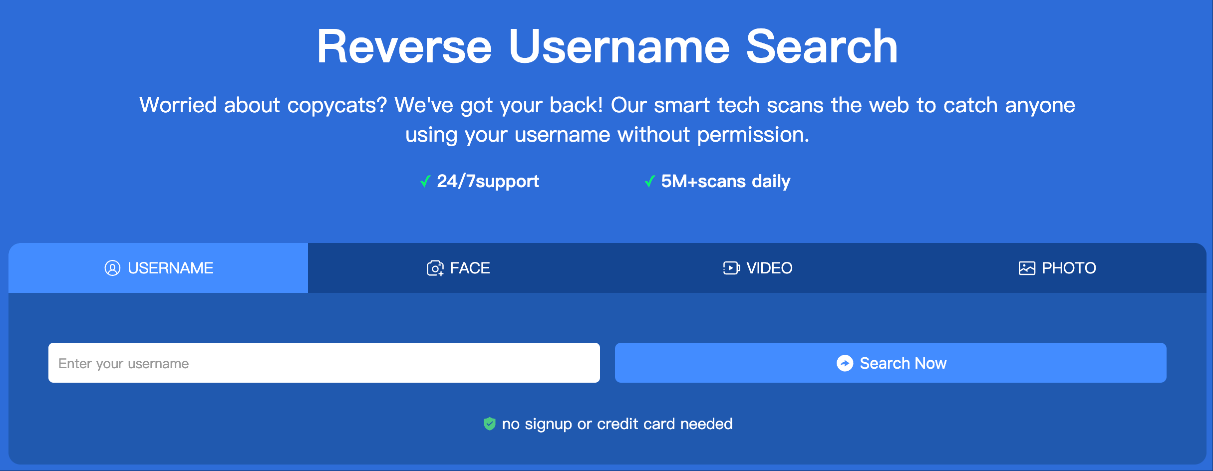 Obwohl Namechk kein Reverse-Search-Tool im engeren Sinne ist, ist es äußerst nützlich, um zu prüfen, ob ein Benutzername oder Markenhandle bereits auf Hunderten von Plattformen registriert ist – ein Muss für Markenüberwachung und Prävention.