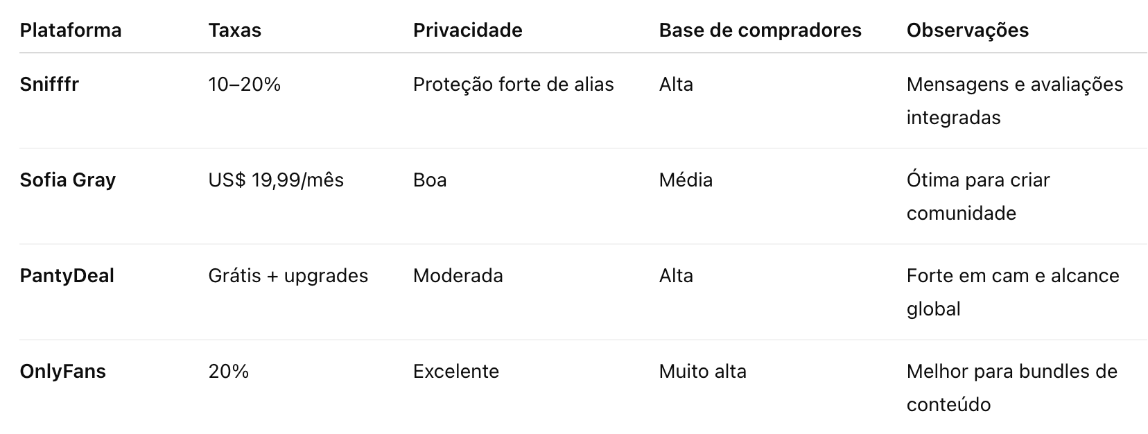 Snifffr, PantyDeal e Sofia Gray — escolha conforme sua estratégia e nível de conforto.