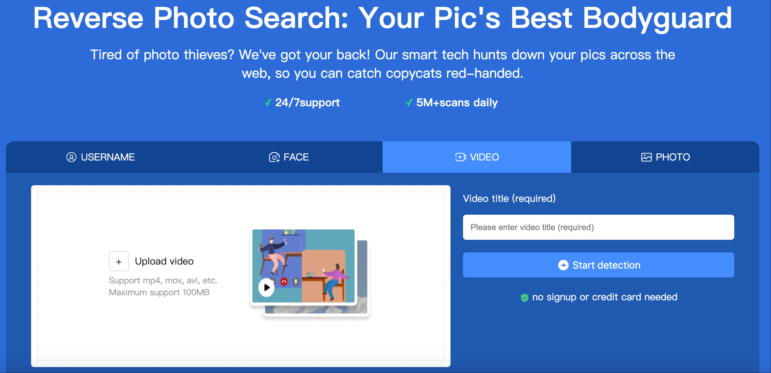 - 反向照片搜索(Reverse Photo Search) – 识别被盗用的图片,包括经过裁剪、滤镜处理或去除水印的版本。